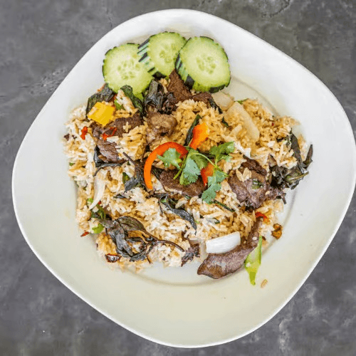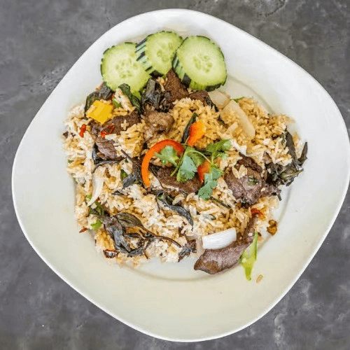 Fried rice mixed with your choice of favorite protein, spicy chili peppers, sweet basil, and fish sauce