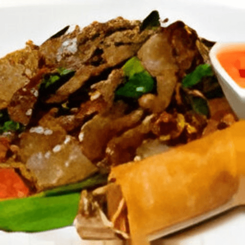 Soft shell crab lightly coated with batter and deep fried. Then stirred fry with fresh garlic and seasoned with salt and pepper. Sweet chili sauce served on the side