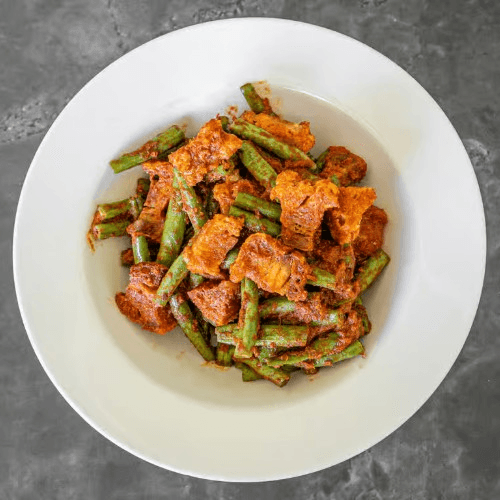 Stir fried with choice of protein, green beans with spicy prik khing curry paste
