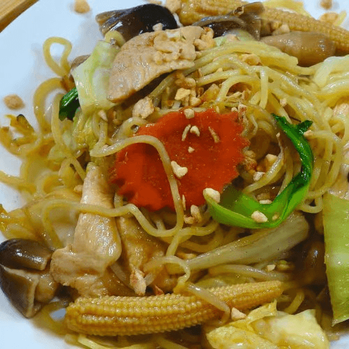 Egg noodle pan-fried, cabbage, beansprouts, onions, mushroom, celery, sesame sauce