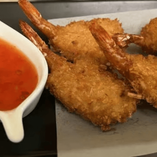 Large size shrimp coated with coconut and breadcrumb, served with sweet and sour sauce