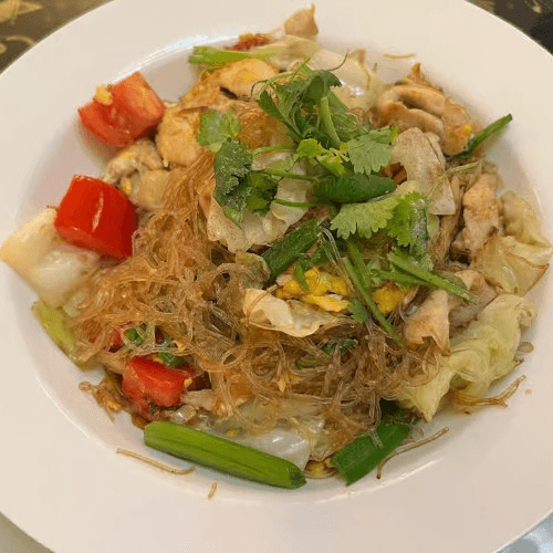 Glass noodle salad made with bean thread noodles, ground pork, shrimp, peanuts, red onion and fresh cilantro. Tossed in a sour and spicy Thai dressing and lime juice