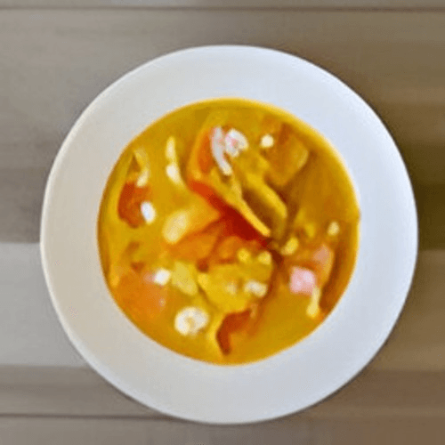 Yellow curry sauce and coconut milk mixed with potato, carrot and sweet onion