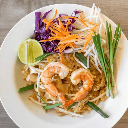 A favorite Thai street food, stir fried rice noodle with homemade pad Thai sauce, choice of protein, egg, bean sprout, crushed peanuts and green chives