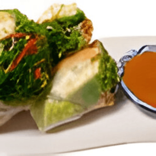 Cabbage, carrot and glass noodle wrapped with egg roll wrappers, deep fried to golden, served with sweet and sour sauce